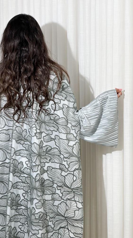 قماش الجلابية خفيف وأنيق مصنوع من التل الفرنسي المطرز يضيف على الإطلالة فخامة