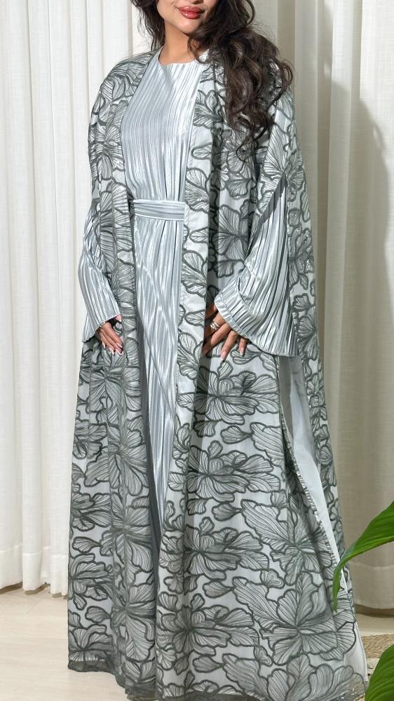 الفستان الداخلي تم اختيارة بلون مناسب للجلابية ويمكن تنسيق الجلابية مع بنطال وتوب حسب الذوق