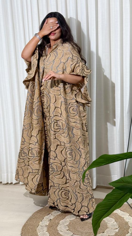 جلابية خامة الجاكار والتل الخفيفة بنقشة الورود بتصميم مناسب للأجواء الرمضانية وكذلك ليوم التأسيس