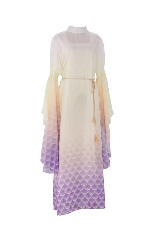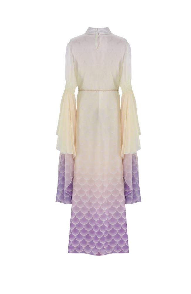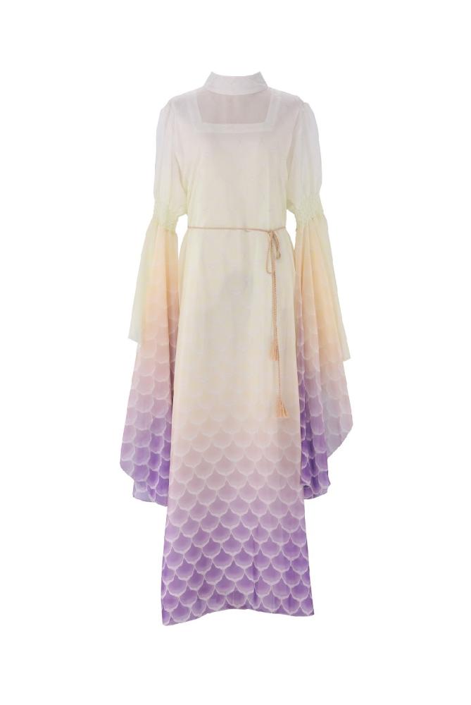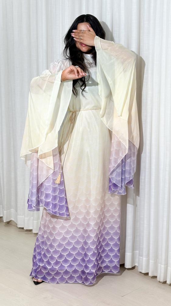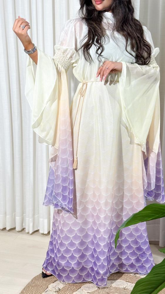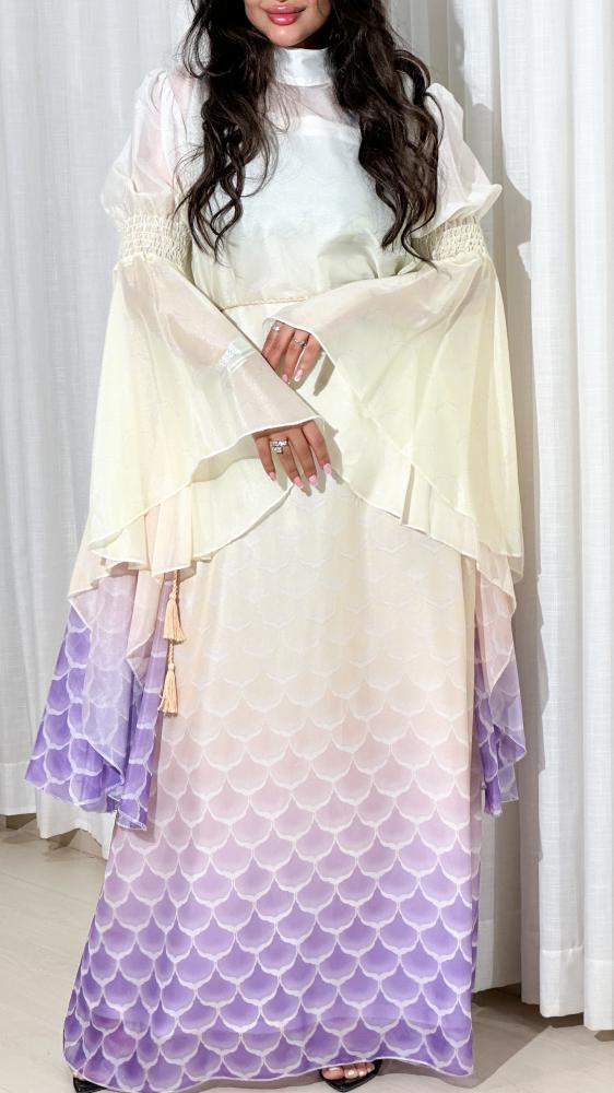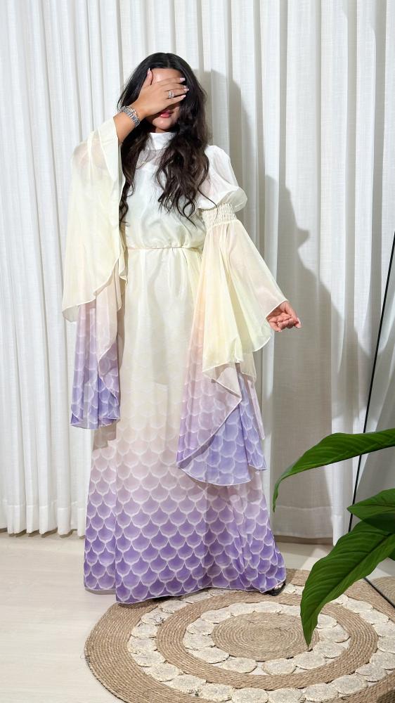 الطبعة تشبه الحراشف بلون اللافندر على كامل الجلابية
